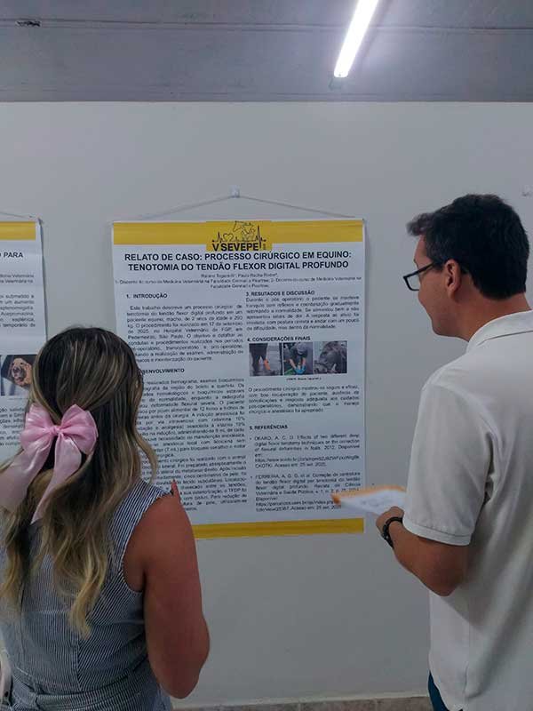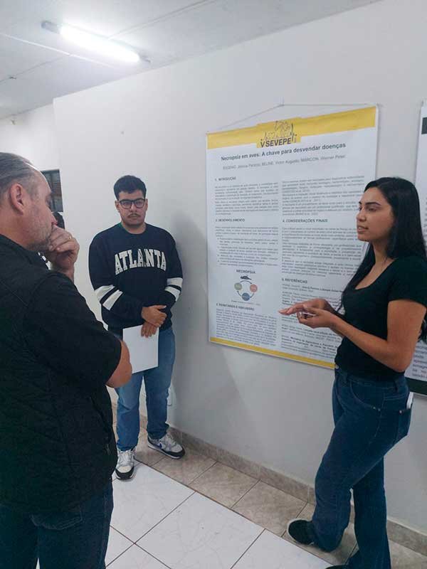 A V SEVEPE também contou com a apresentação de 48 trabalhos científicos, resultado do empenho e dedicação de alunos e professores. O momento foi um dos destaques da programação, reforçando a importância da pesquisa acadêmica como parte essencial da formação em Medicina Veterinária.